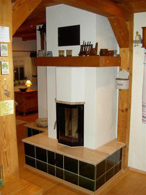 • Speicherkachelofen mit Speicherringen und Handsteuerung